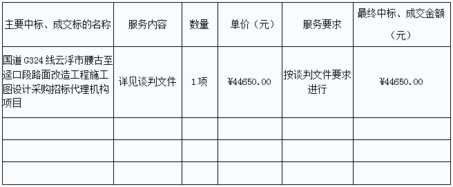 G324線云浮市腰古至逕口段路面改造工程施工圖設(shè)計采購招標(biāo)代理機構(gòu)項目的中標(biāo)、成交公告